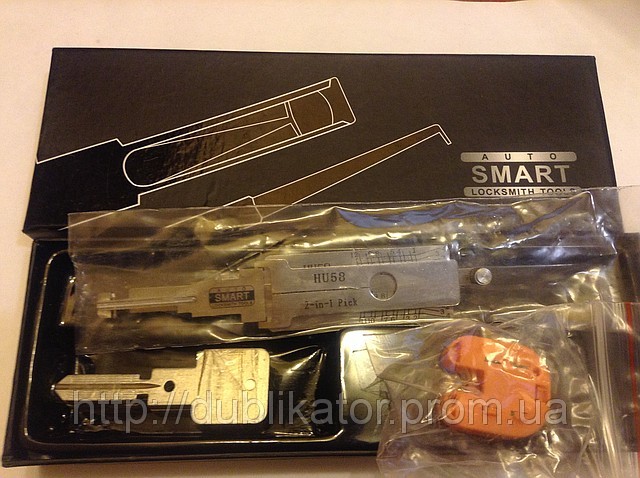 На данной странице вы можете купить отмычку - декодер (считыватель) 2в1 для замков BMW HU58 , позволяющий изготавливать автомобильные ключи без снятия На данной странице вы можете купить отмычку - декодер (считыватель) 2в1 для замков BMW HU58 , позволяющий изготавливать автомобильные ключи без снятия и разборки замка (плоские ключи) и вскрыть замок зажигания менее чем за 1 минуту Специальное приспособление считывает код ключа. Затем необходимую заготовку режут специальными щипцами. Ключ готов. Все действия отмычкой-декодером происходят без снятия и повреждения личинки замка. В комплекте: Отмычка-декодер 20 заготовок ключей