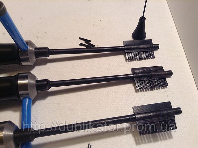 Предназначена для открытия сувальдных замков для ключей с двойной бородкой (ATRA, CR, LINCE, MOTTURA, MOTTURA NUCLEO СТАРАЯ МОДЕЛЬ, POTENT, POTENT МЕНЯЕТСЯ ЛЕГКО, RODES , SECUREMME, CIFIAL, KLASS, GARDIAN, ELBOR, и т. д.). Система быстрой автоимпрессии. Исключительный дизайн насадок и углубления, которые имеют иглы регулирования, делает данный инструмент единственным на рынке. Инструмент изготовлен при помощи самой высокой европейской технологии. «Самоимпрессионный универсальный ключ» - предназначен для открытия сувальдных замков для ключей с двойной бородкой, бес повреждений и взлома с системой быстрой автоимпрессии. Предназначена для открытия квартирных дверей. Работает вскрытие сувальдного замка методом самоимпрессии. Высокая частота, позволяет легко открывать большинство замков. Возможность открытия без усилий и без повреждений (например, распространённых замков российского и импортного производства для сейфов и хранилищ и т.д.). Для вскрытия замков: ATRA, CR, LINCE, MOTTURA NUCLEO COMPACT, MOTTURA NUCLEO СТАРАЯ МОДЕЛЬ, POTENT 7000, MOTTURA, POTENT ЛЕГКО МЕНЯЕТСЯ, RODES, SECUREMME, CIFIAL, KLASS, GARDIAN, ELBOR, CISA МАЛЕНЬКАЯ, MOTURA 2 ПОВОРОТА, MOTTURA С ЦЕНТРИРОВАННЫМИ СУВАЛЬДАМИ, SECUREME, COFRE SECUREMME, FIAM, JUWEL, UCEM 2 ПОВОРОТА И ЗАДВИЖКА, UCEM 4 ПОВОРОТА, CAM 3+3, AKARSAN,SECUREMME 2 И 4 ПОВОРОТА, CISA, CISA ЛЕГКО МЕНЯЕТСЯ, AGC, STAVR (LATVIJA), СЕЙФ ARFE, СЕЙФ ARFE ЭЛЕКТРОННЫЙ, CЕЙФ МАЛЕНЬКИЙ CISA EMBUTIR, СЕЙФ МАЛЕНЬКИЙ ARREGUI EMBUTIR, MCM, LINCE, CISA, СЕЙФ JUWEL, BODA-428, BORDER, ABLOJ, FAC,BODA-428, BORDER, ABLOJ, И МНОГИХ ДРУГИХ...